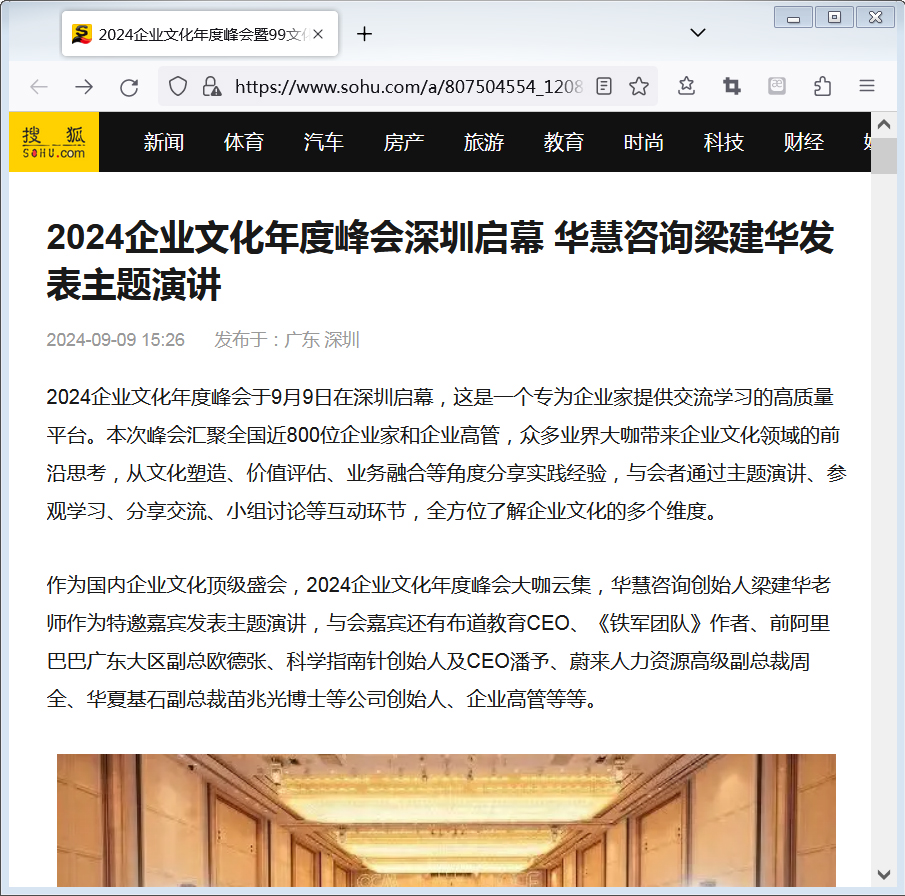 作为国内企业文化顶级盛会,2024企业文化年度峰会大咖云集,华慧咨询创始人梁建华老师作为特邀嘉宾发表主题演讲,与会嘉宾还有布道教育CEO、《铁军团队》作者、前阿里巴巴广东大区副总欧德张、科学指南针创始人及CEO潘予、蔚来人力资源高级副总裁周全、华夏基石副总裁苗兆光博士等公司创始人、企业高管等等。